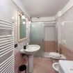 Subito dopo troviamo l'ampio bagno, arredato con sanitari completi in ceramica, asciugacapelli e doccia.