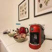 Forno, microonde, piano cottura con cappa, lavabo, frigo e freezer, bollitore, tostapane e macchina per un buon caffè Lavazza, attendono solo di essere utilizzati.