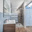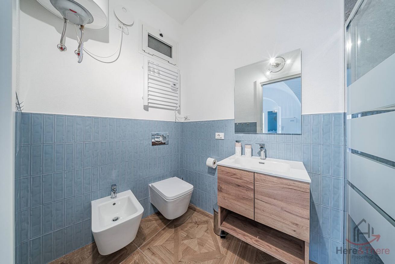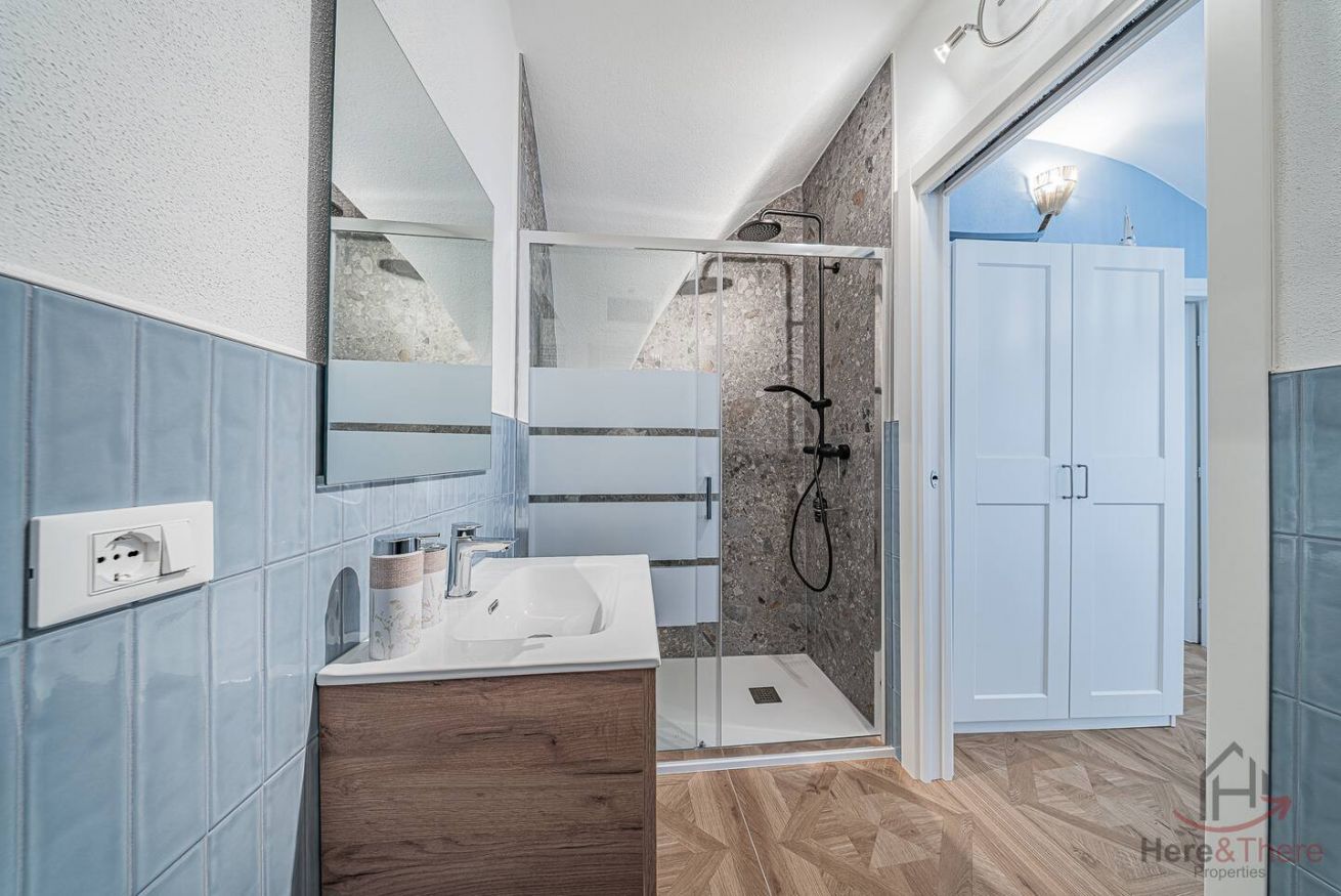 Continuing further, you will find the full bathroom equipped with all sanitary facilities and a shower where you can refresh yourself after a day spent at the beach, hiking, or strolling through the historic center.
