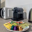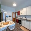 La cucina è completa di tutto ciò che può servire anche nei soggiorni più lunghi che saranno un problema, avendo a disposizione un forno, un microonde, lavastoviglie, piano cottura, frigo e freezer, bollitore elettrico ed una macchina per il caffè in cialde Nespresso.