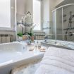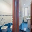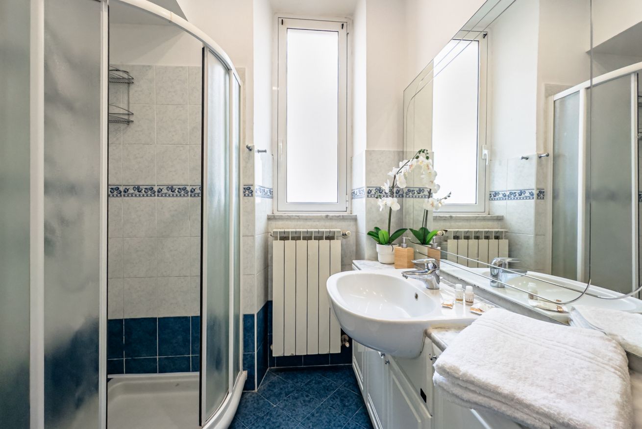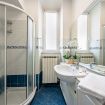 Il primo più spazioso e completo con sanitari in ceramica, ampio specchio, lavabo, asciugacapelli e doccia.