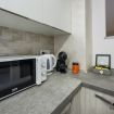 La cucina è completa di tutto ciò che può servire anche nei soggiorni più lunghi che saranno un problema, avendo a disposizione un forno, un microonde, lavastoviglie, piano cottura, frigo e freezer, bollitore elettrico ed una macchina per il caffè in cialde Dolce Gusto.