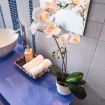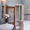 Proseguendo oltre, il generoso bagno, arredato con sanitari completi in ceramica, ampio specchio, asciugacapelli e doccia. Un Welcome Kit 100% Made in Italy composto da Shampoo, Igiene intima, Saponetta e Cuffia è offerto dalla casa.