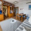 L’ampia zona giorno, anch’essa climatizzata, vede la presenza di un divano letto matrimoniale a tre sedute, con tavolino e Smart TV 40”.