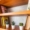I numerosi scaffali, sono ricolmi di varie letture, per gli appassionati. Qui è presente inoltre un tavolo da pranzo per 4 persone.