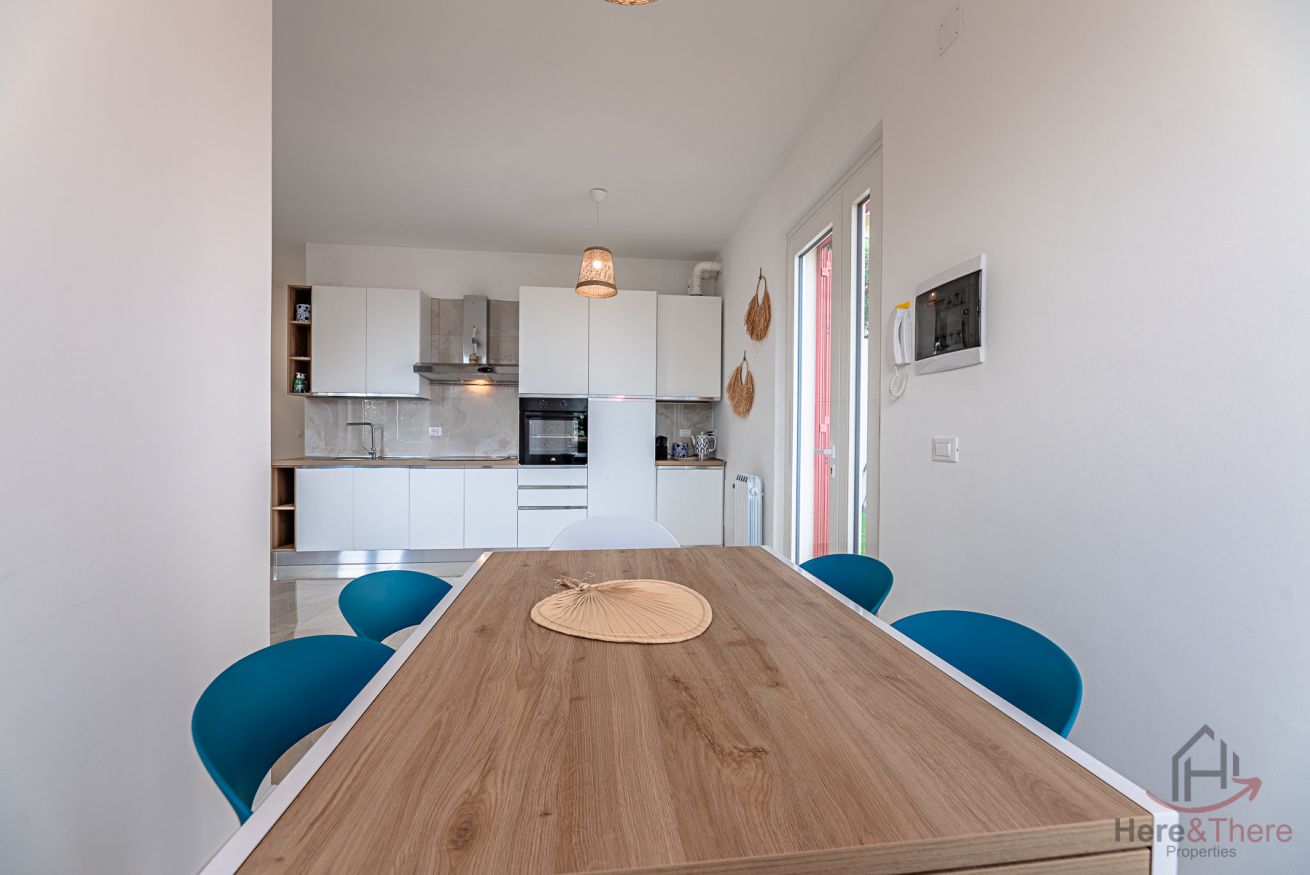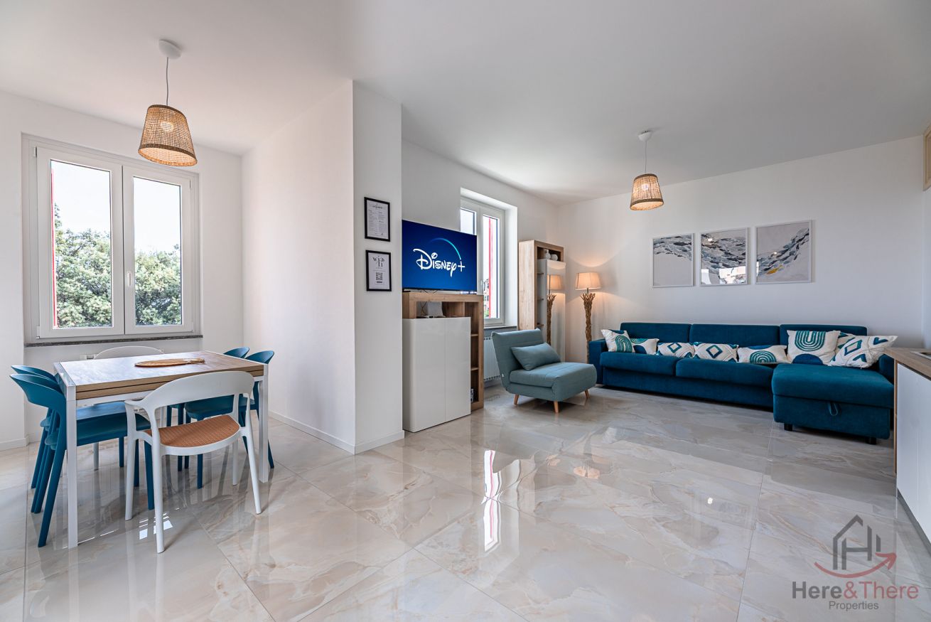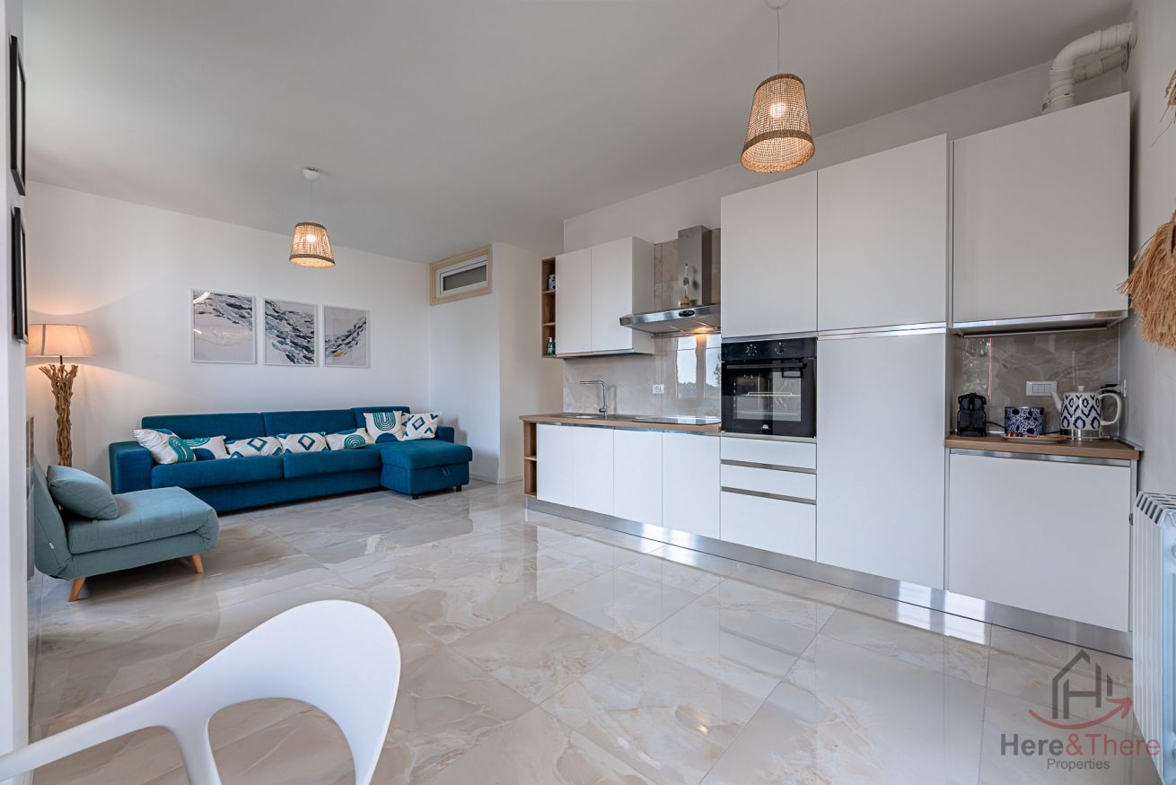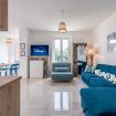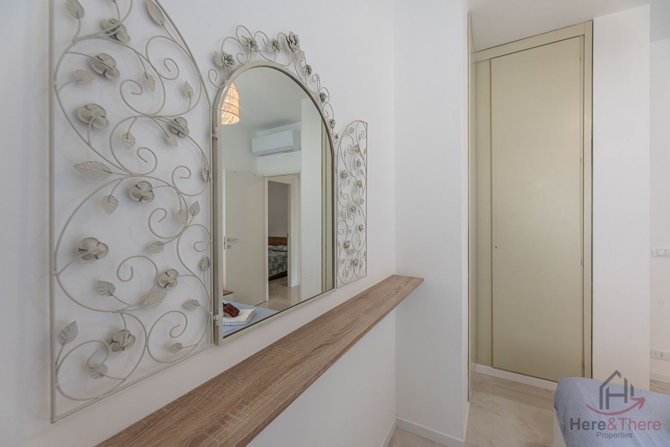 Varcata la soglia, vi troverete nell’ampia zona living, dove un spazioso divano di fronte alla grande Smart TV vi inviterà al relax dopo una giornata di sole e mare.