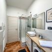 L'ultimo ambiente che gli ospiti troveranno è l'ampio bagno, arredato con sanitari completi in ceramica, ampio specchio, asciugacapelli e doccia. Un Welcome Kit 100% Made in Italy composto da Shampoo, Igiene intima, Saponetta e Cuffia è offerto dalla casa.