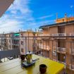 Le ampie finestre si aprono sullo spazioso e ventilato terrazzo, composto da un piccolo tavolino da esterni e due sedie, per assaporare un buon caffè italiano, di prima mattina.